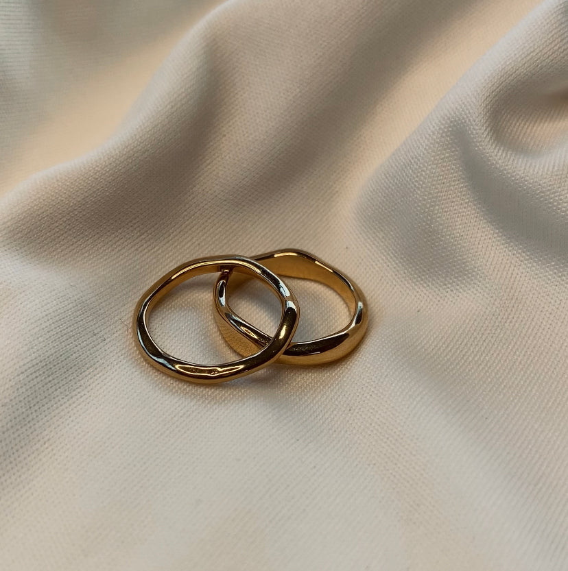 Go with the flow in our Corriente Ring - a golden band that effortlessly mirrors life's fluidity. Embrace the journey with this stylish and adaptable accessory. 18k Gold Plated. Available in a this and wide band.