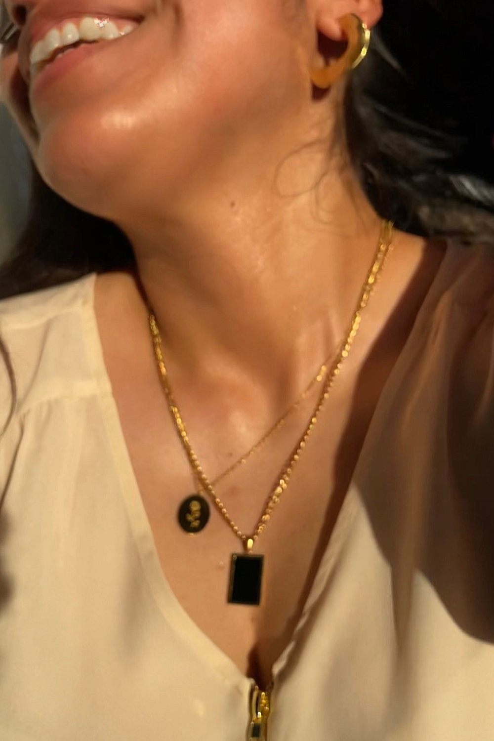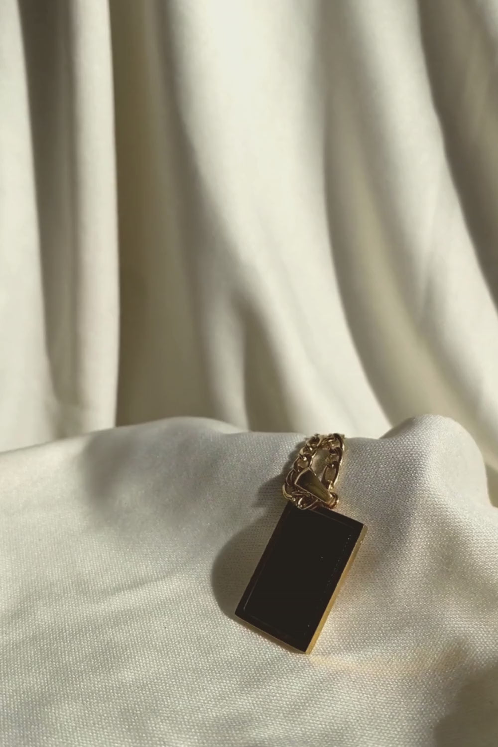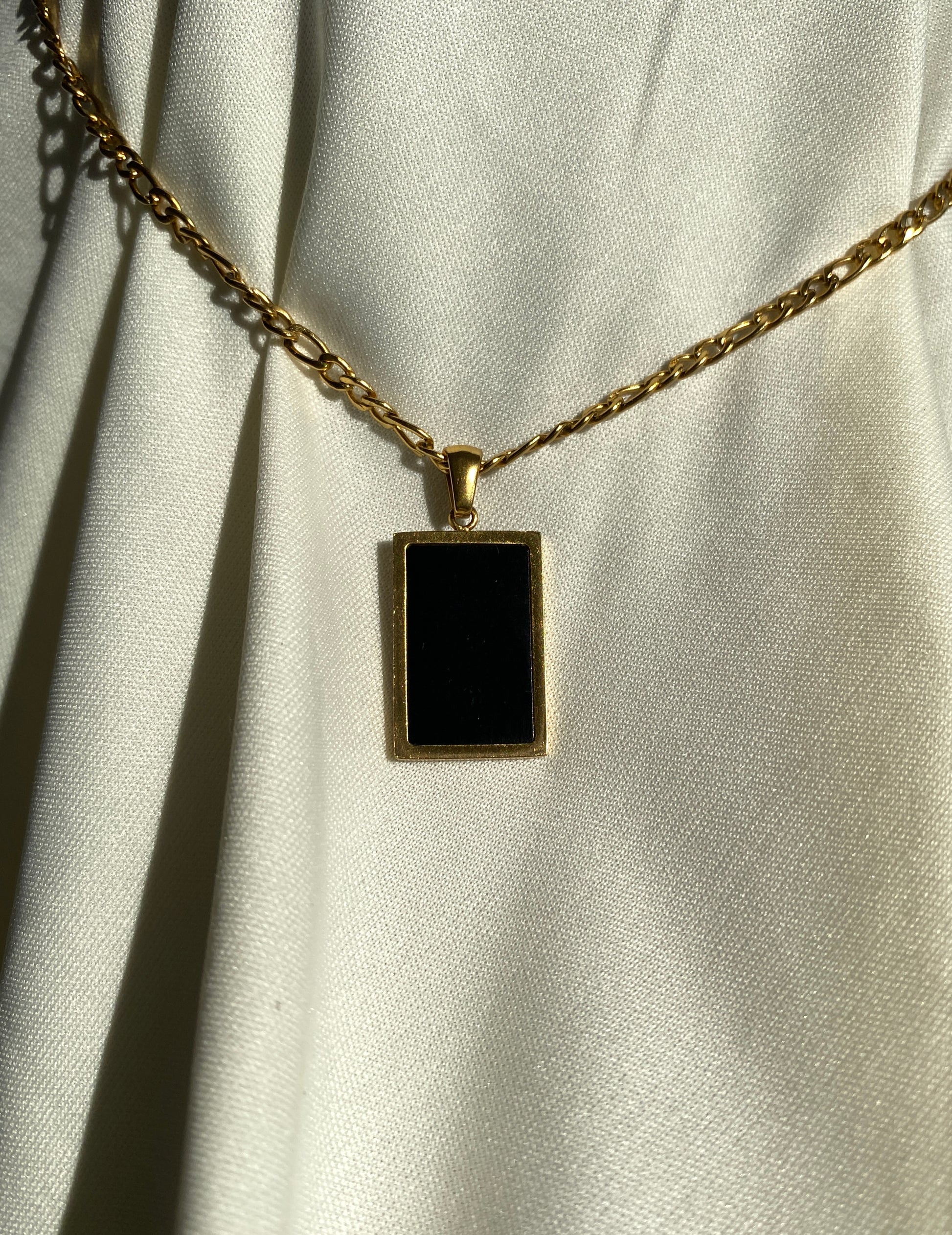 Alluring Onyx - Our Sirena Pendant is a captivating masterpiece that beckons with its enticing allure. Encased in an exquisite 18k Gold Plated frame, the center stone, a deep onyx, evokes a sense of mystery and enchantment—a captivating abyss of beauty that draws you in with its elegant shadow. Let this necklace be a poetic expression of your unique style, where darkness and beauty intertwine in perfect harmony.